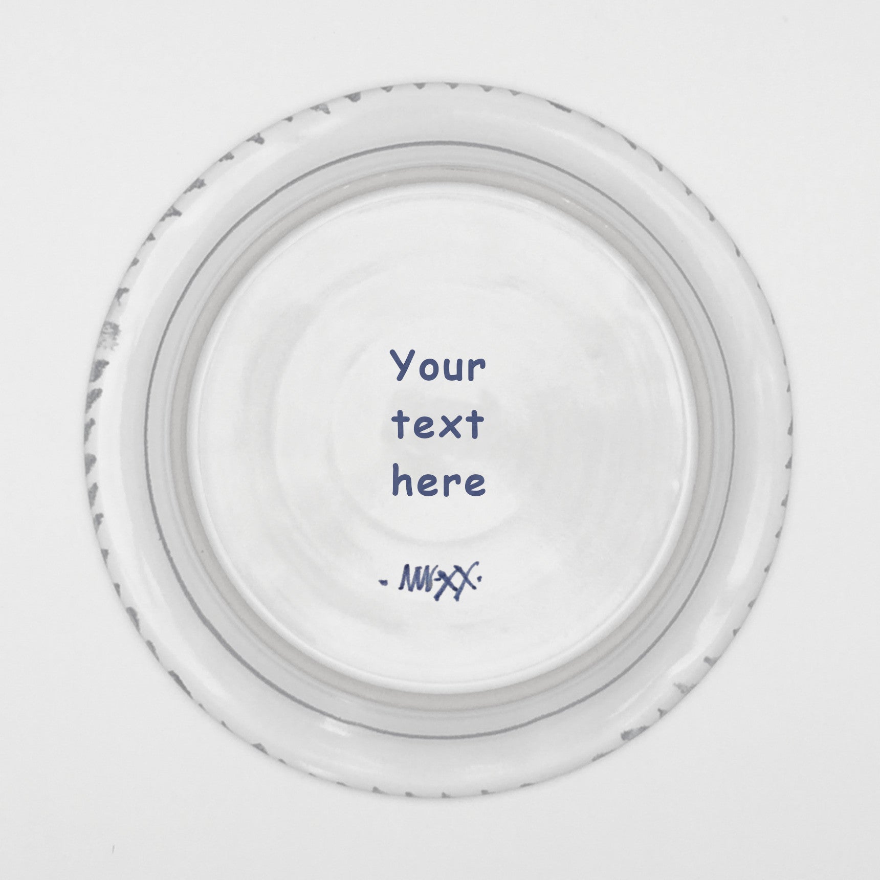 You may also add a handwritten message on the base. The layout will be arranged to suit the shape of each piece.