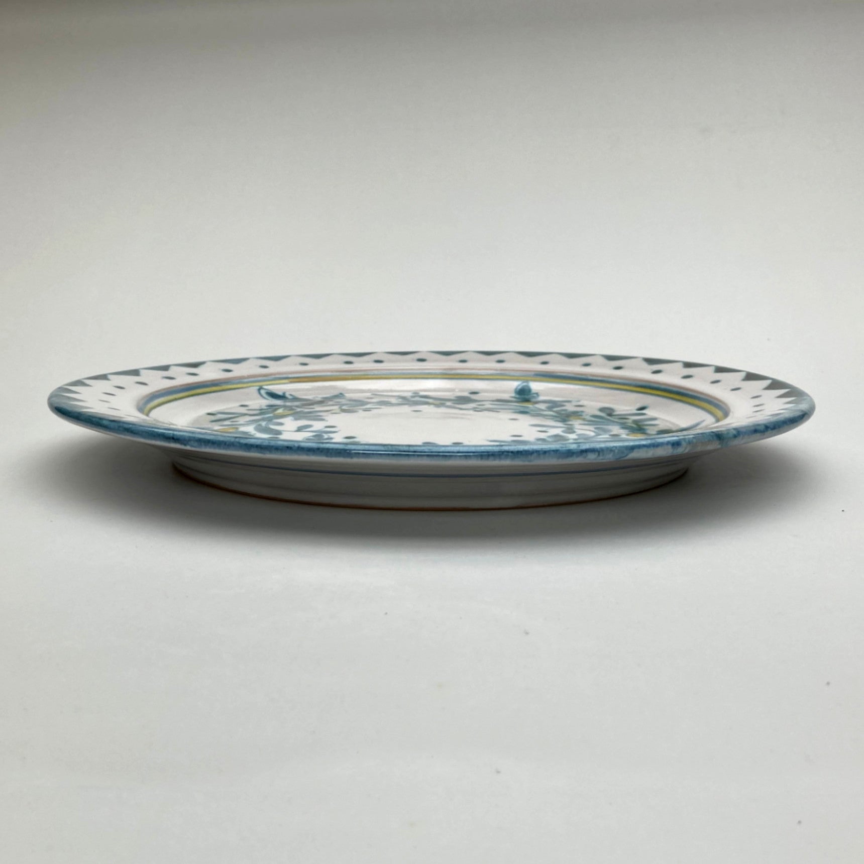 The pottery is fired at a slightly higher temperature than is typical for European Majolica, which gives added strength while retaining the softness of earthenware.